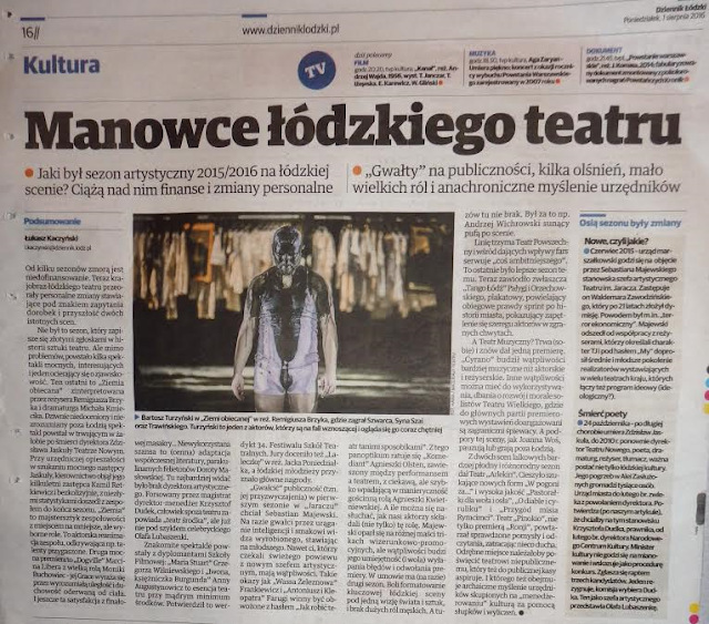 Jaki był sezon artystyczny 2015/2016 na łódzkiej scenie? Ciążą nad nim finanse i zmiany personalne. "Gwałty" na publiczności, kilka olśnień, mało wielkich ról i anachroniczne myślenie urzędników.